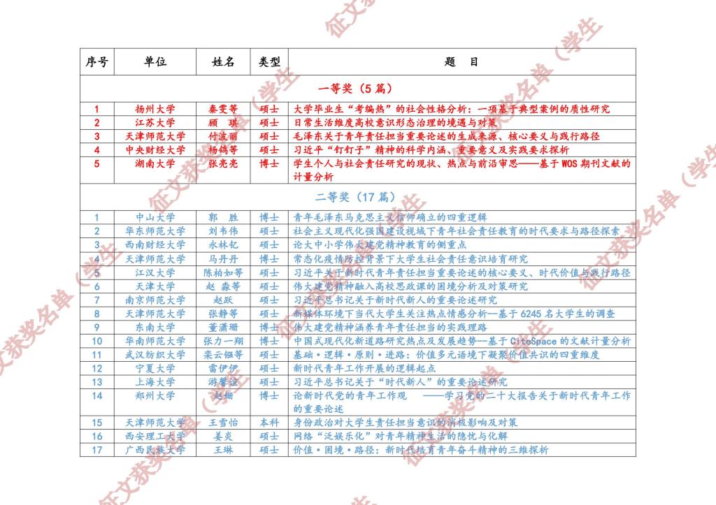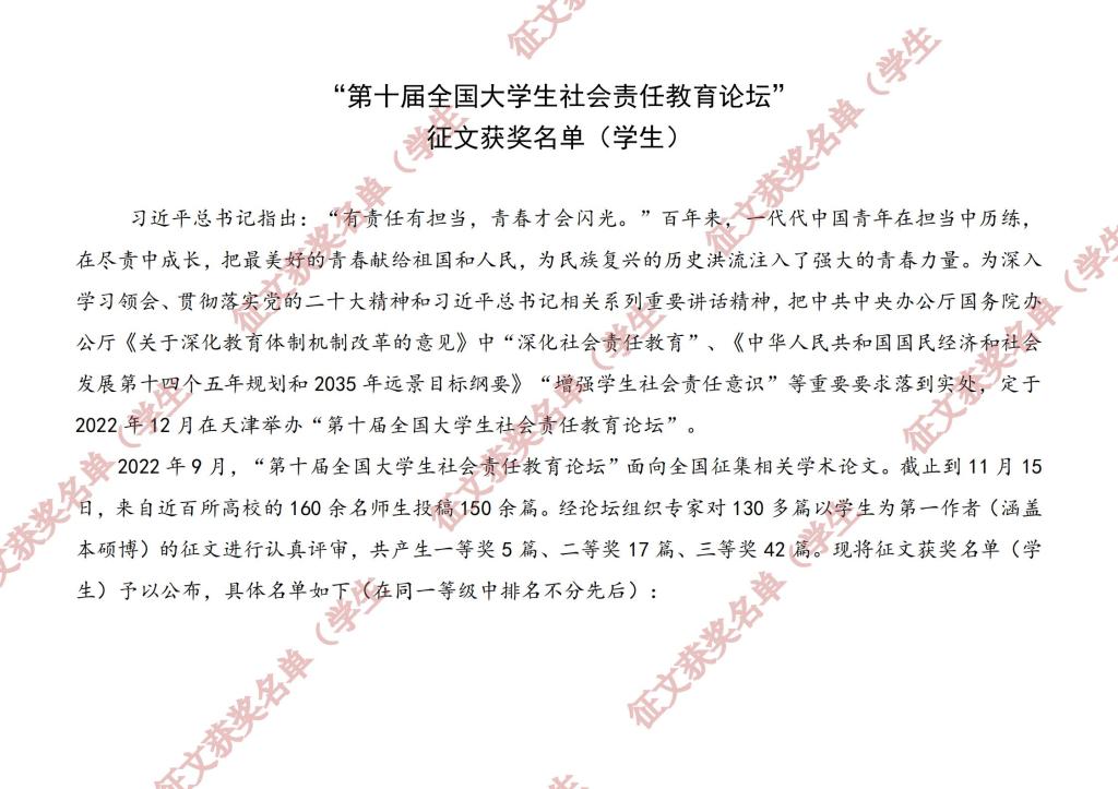 据悉,为深入学习领会、贯彻落实党的二十大精神和习近平相关系列重要讲话精神,论坛面向全国征集相关学术论文,共收到近百所高校的160余名师生投稿150余篇,经论坛组织专家对130多篇以学生为第一作者(涵盖本硕博)的征文进行认真评审,共产生一等奖5篇、二等奖17篇、三等奖42篇。