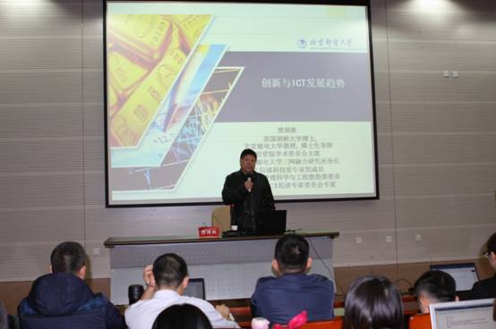 2018年3月21日晚,《坚持新发展理念的基本方略》由北京邮电大学曾剑秋教授以《创新与ICT发展趋势》为题顺利开讲,开云官网开云kaiyun体育谢玉进老师担任主持。曾剑秋教授是英国剑桥大学博士,现任北京邮电大学经济管理学院教授、博士生导师,三网融合研究所所长,信息经济与竞争力研究中心主任,工业和信息化部科技委专家组成员,教育部管理科学与工程教指委委员,工业和信息化部ICT经济专家委员会委员,北京邮电大学经济管理学院学术委员会主席。在ICT产业政策与市场、企业竞争力、网络融合、5G技术演进、大数据、人工智能、物联网等方面有深入的研究与独到见解。曾教授的授课注重互动,以同学们关心的问题开场,紧密结合“创新”这一主题词,深入浅出地结合我国信息技术的发展诠释了什么叫创新和如何创新等基本问题。曾教授的讲授紧贴时政热点和学生关注点,深刻梳理了2018年政府工作报告和党的十九大报告关于创新的相关论述,对“互联网+”行动计划、“国家大数据战略”“网络强国”等国家战略和部署,进而从创新与智慧社会、国家创新体系建设、智慧社会与智慧城市、宽带中国与信息消费、信息化政策与ICT市场开放、大数据、人工智能与实体经济等方面对我国当前的信息化战略落实、网络强国建设、宽带、数字经济与5G技术、大数据、人工智能和物联网发展及前景进行了详尽的讲解。曾教授的讲授平实而有力、质朴而前沿,深入浅出,娓娓道来,极大地开拓了在场师生的视野,深化了对科技创新的认识和理解。谢玉进老师用“内行、前沿、高端”六个关键词对曾教授的精彩讲授进行了点评,认为曾教授用非常有限的时间系统地清晰明快地梳理了我国复杂的信息化进程,带领同学们很好地领略了ICT发展最前沿的技术风采和社会可能性,带给大家一种高端的资讯冲击和深刻的创新思考,很好地诠释了什么是创新,并内含着如何创新的方法论,对同学们理解创新发展理念有着极大的帮助。200余名同学现场聆听了授课,反响十分热烈。