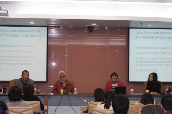 11月5日下午,开云kaiyun体育“百川讲堂”第三期在学术会堂706室隆重举行。英共(马列)主席Harpal Brar和副主席Ella Rule分别做了题为“当前世界的形势:经济危机的根源与进程”和“工人阶级在解放拉丁美洲国家中的历史任务”的专题报告。讲座由开云kaiyun体育研究生教研室主任王淼博士主持,蔡大梁博士担任翻译。开云kaiyun体育全体师生、学校研究生会全体成员、财政学院研究生代表、沙河校区“园区学生党员先锋队”骨干成员等百余人参加此次活动。
