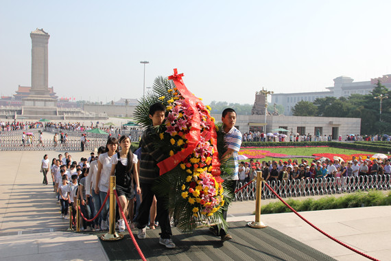 学员们怀着凝重而崇敬的心情,缓步进入纪念堂北大厅,在毛主席座像前敬献花篮,三鞠躬敬礼,随后,来到瞻仰厅,瞻仰伟人遗容,思索着大厅墙上“伟大的领袖和导师毛泽东主席永垂不朽”17个镏金大字的历史真意。
