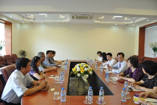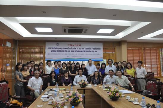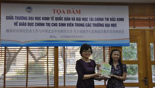 下午,国民经济大学马列系全体教师在马列系会议室与代表团成员就高校学生思想政治教育培训展开商谈研讨。马列系主任陶芳连副教授首先介绍了该系的基本情况。该系由马克思列宁主义理论基本原理、胡志明思想、越南共产党革命路线三个教研单位组成,主导课程包括马克思列宁主义理论基本原理、胡志明思想和越南共产党革命路线,分别是5学分、2学分和3学分。该系有1名教授,4名副教授和36名讲师组成,承担全校本科生、硕士和博士政治理论公共课的教学工作。学生管理处阮黄何副处长介绍了河内国民经济大学学生思想政治教育和管理工作,主要包括思想政治教育、文体美教育、法律指导、处理学习期间的学生权力、住校学生的管理工作、奖惩管理、与校共青团配合加强学生管理工作以及学生会工作等方面。