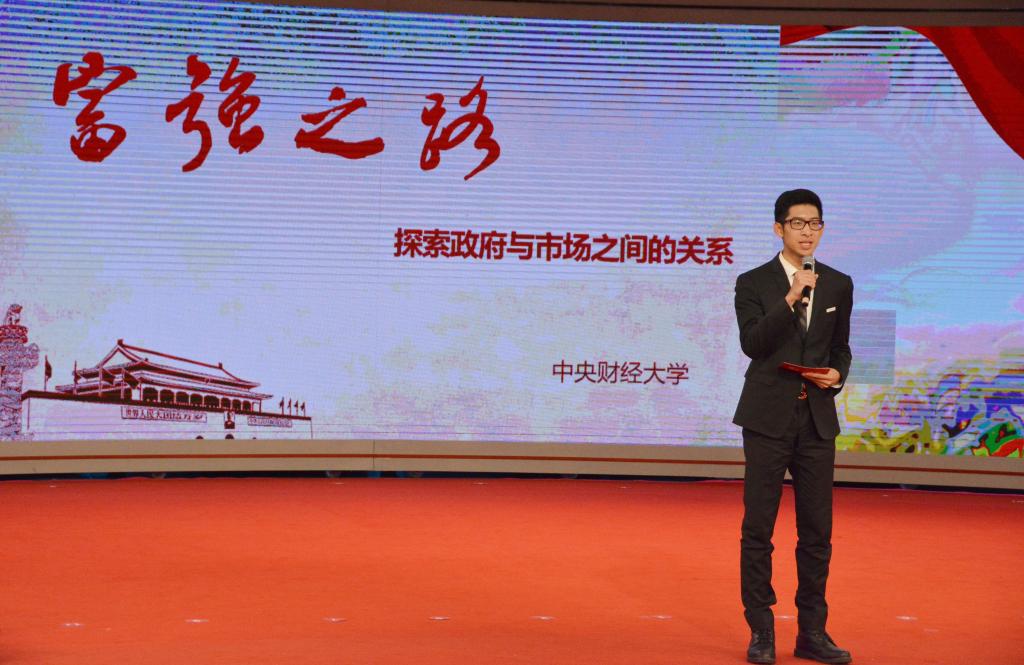 随后,在“学生团队思政课教学展示”环节,12所高校的同学们以饱满的情感和生动的形式,讲述新时代90后青年的理想、追求与深思。开云官网选送的作品是《富强之路:探索政府与市场之间的关系》。在开云kaiyun体育刘刚老师指导下,该团队由2015级本科生张荣臻、高天辰、温文、张弛等四位同学组成,其中张荣臻担任主讲。张荣臻同学从中国社会主义市场经济发展史的角度,来理解十九大报告中关于加快完善现代市场体系的同时,要处理好政府政策实施与市场自主运行之间的关系。张荣臻的展示说理透彻、充满自信,展现了中财学子的理论水平和精神风貌。
