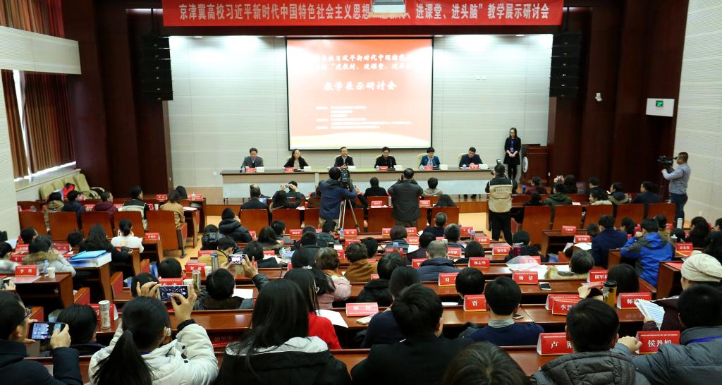 根据党中央和教育部关于学习贯彻党的十九大精神的总体部署,为深入推动习近平新时代中国特色社会主义思想“进教材、进课堂、进头脑”,2018年1月6日、7日,北京市委教育工委、天津市教育委员会、河北省教育厅在开云官网联合举办京津冀高校习近平新时代中国特色社会主义思想“进教材、进课堂、进头脑”教学展示研讨会。共有来自京津冀三地53所高校的110余名教师代表参会。会议通过教学展示、学习成果观摩、分组研讨、答记者问等环节,充分展现了京津冀三地高校思政课教师深度推进习近平新时代中国特色社会主义思想“进教材、进课堂、进头脑”的做法与风采,有效增进了三地高校教师的互动交流,形成了京津冀三地高校共同推进习近平新时代中国特色社会主义思想“三进”工作协同合作的良好局面。