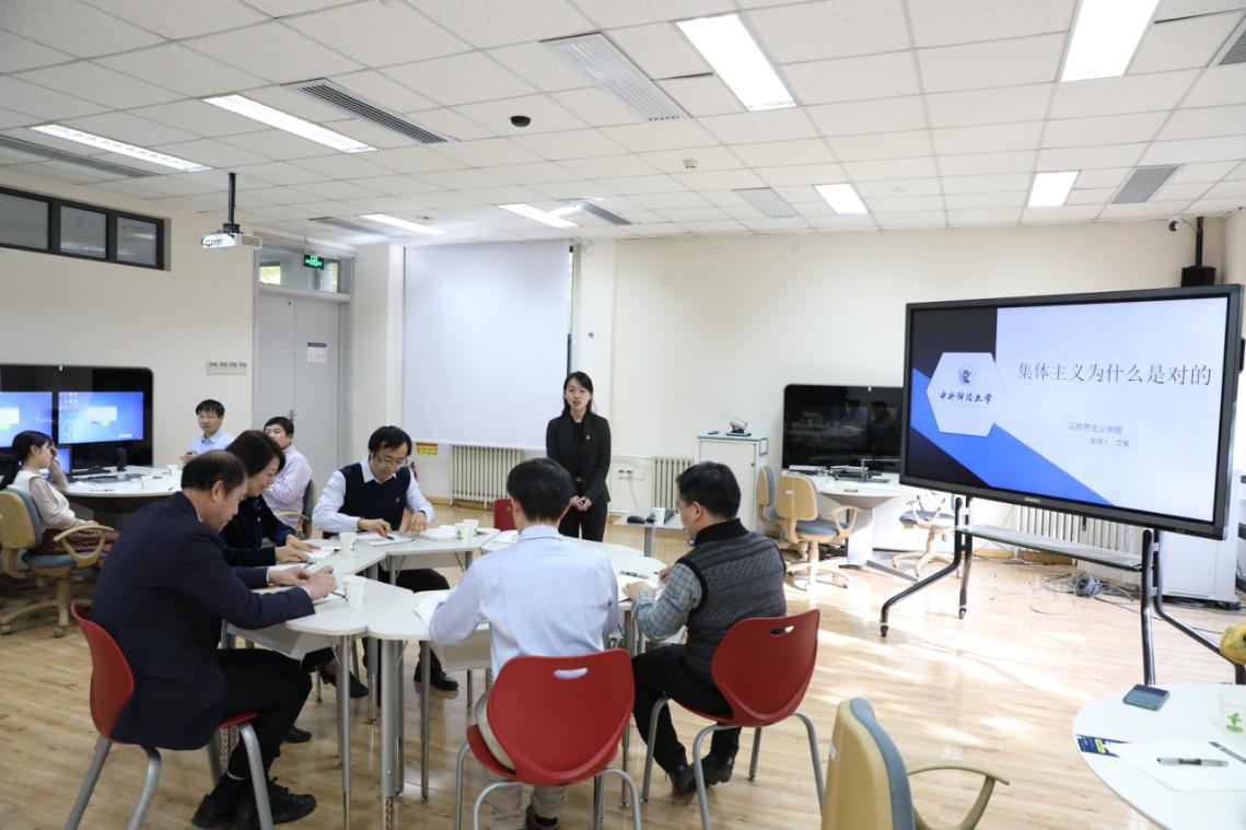 备课会由“思想道德修养与法律基础”教研室主任文雅副教授就《集体主义为什么是对的?》进行说课展示,文雅从此次新冠疫情中美抗“疫”的不同表现切入,通过对比讲解了学生在理解“集体主义”时容易出现的三种误区即过时论、绑架论和集合论,并在批判中层层递进地回答了“集体主义为什么是对的”这一主题。针对这一备课内容,冯秀军教授建议要更多地结合学生的现实生活,不要抽象地去谈论理论;黄刚副教授建议应该再结合马恩经典原著中关于人的本质的论述来深挖个人对于集体的内在需求;谢玉进副教授建议在时间的分配上应该留足时间从正面阐述“集体主义为什么是对的”;刘刚副教授则从案例的选用上提出了自己的看法……与会老师们都对文雅的说课展示纷纷发言,站在不同的学科背景、不同的课程视角对如何讲好集体主义提出了宝贵意见,在热烈的讨论中将集体备课的氛围推向了高潮,有效深化了对备课主题的认识,较好地达到了跨教研室集体备课的目标。