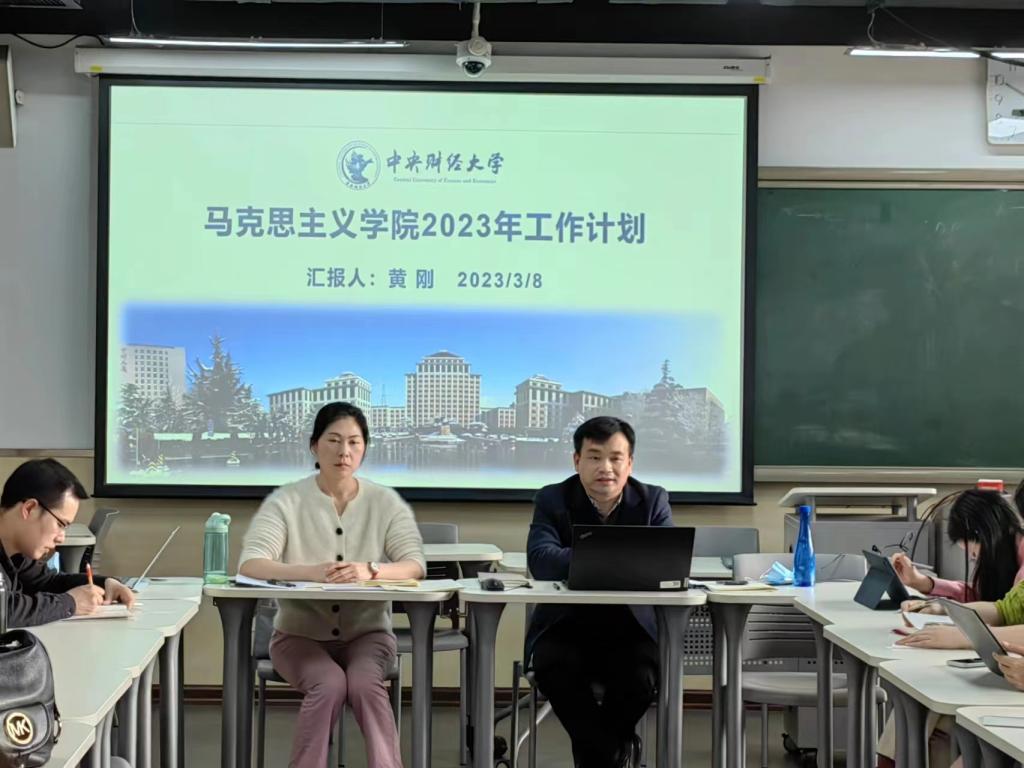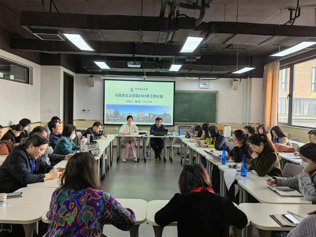 院长黄刚布置学院2023年工作。在认真学习领会教育部社科司、北京市教工委和学校2023年工作要点精神的基础上,结合学院实际和发展规划,经过学院党政联席会、党委委员会深入讨论并广泛征求师生意见,形成2023年工作计划和要点。2023年,学院以发扬传统、稳中求进、凝心聚力、共建共享为总体思路,重点做好以下五方面工作:一是以高质量党建引领学院高质量发展;二是以大思政课为抓手推动思政课改革;三是以有组织的科研激活学科科研工作;四是以内涵式发展提升研究生培养质量;五是以共治共享为宗旨推动学院新发展。黄刚院长对各项工作的总体考虑、发展目标、工作举措等内容作了详细说明和介绍。
