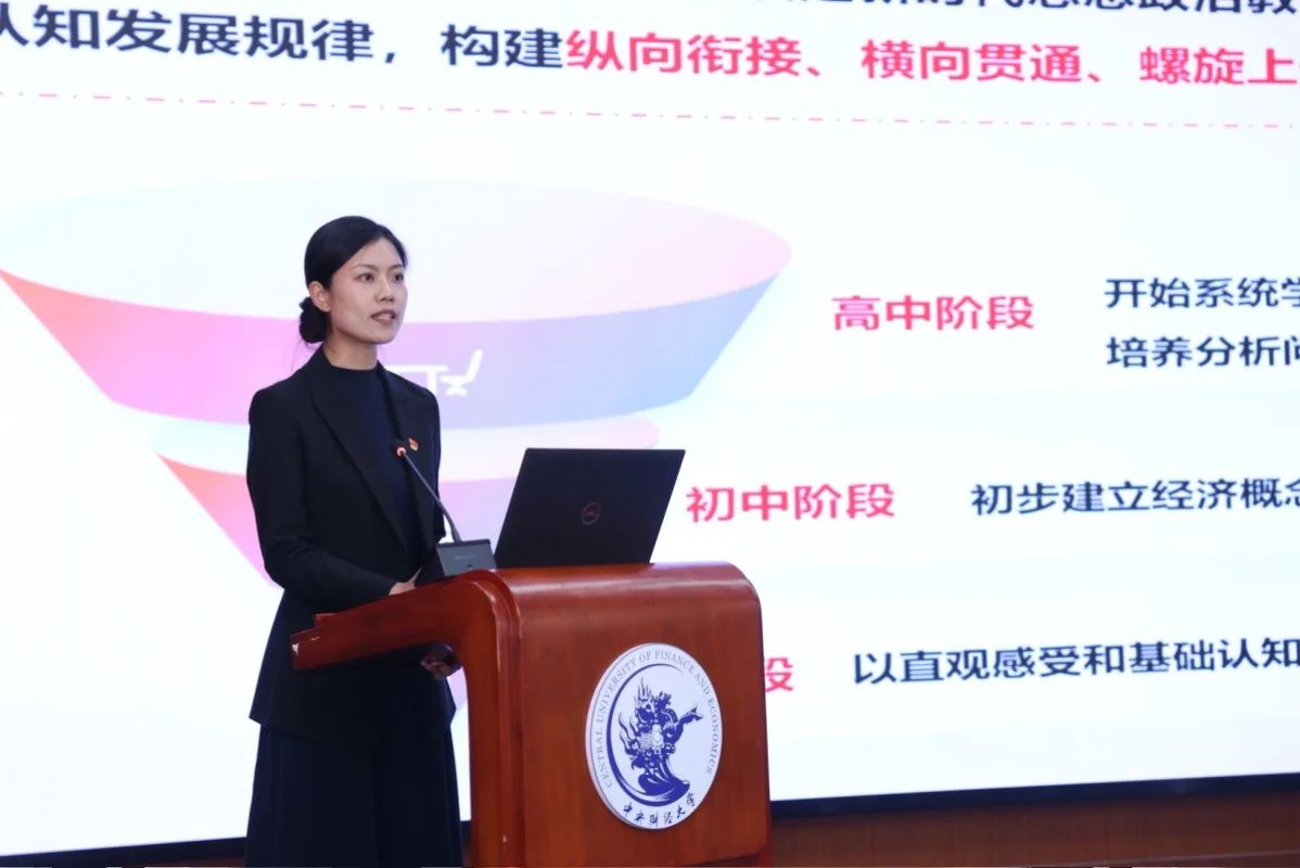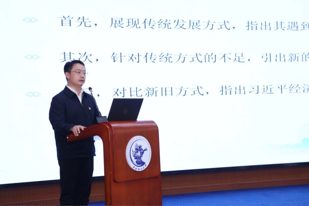 开云kaiyun体育思政课教师李扬以《以高质量发展推进中国式现代化》为题汇报了一体推进习近平经济思想融入思政课教学在大学学段的教学设计。李扬从学情分析、破解之道、教学设计、教学预期四个方面展开教学分享。李扬指出,习近平经济思想肩负着引领中国经济发展方式转型的历史重任,因此必须结合这一伟大实践来理解习近平经济思想。在教学中,首先要讲清楚传统发展方式,深刻认识其贡献、局限与面临的挑战;其次,要讲清楚新的高质量发展方式;最后,对比新旧发展方式,指出习近平经济思想在推进中国经济由高速增长转向高质量发展中的历史作用。