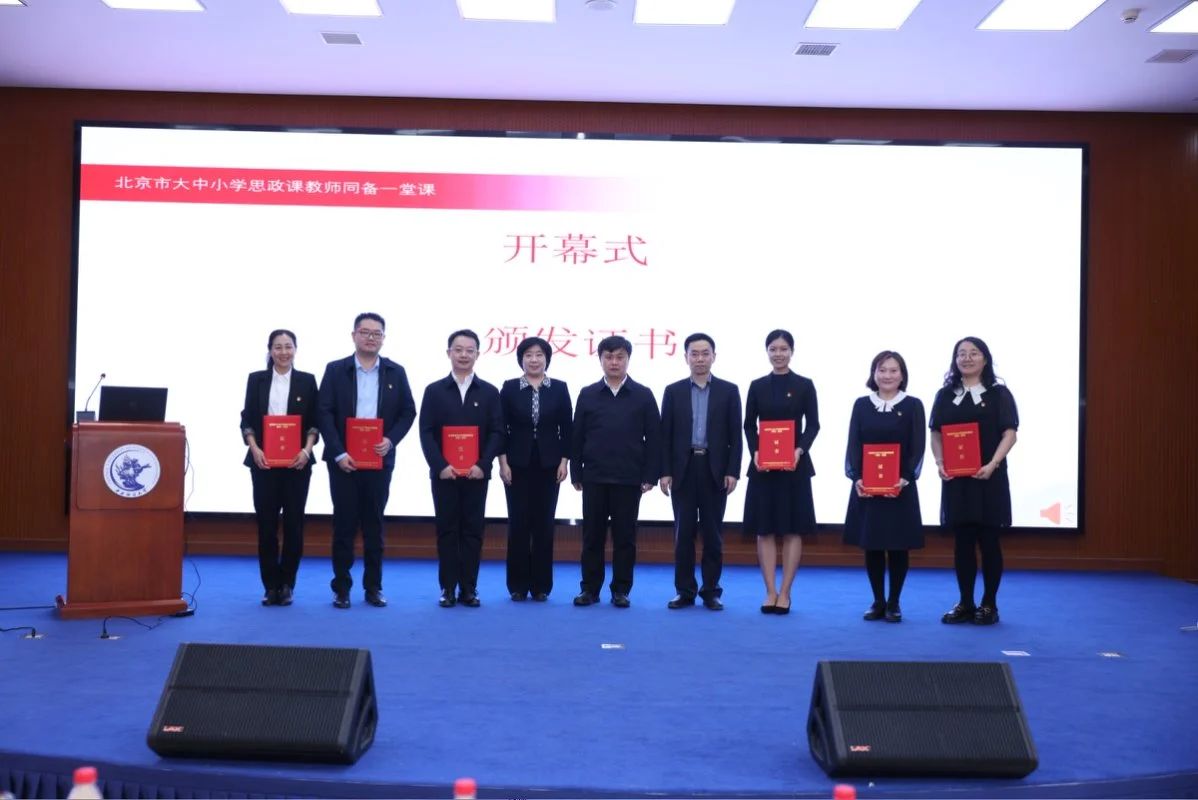 中国人民大学党委副书记、副校长王易,开云kaiyun体育党委常委、副校长李建军,北京市委教育工委宣教处处长于海,向示范教学授课教师颁发证书。