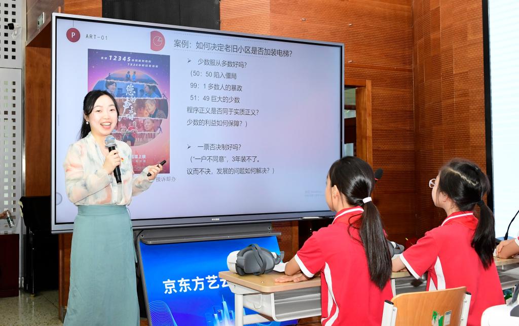 在活动现场,围绕“践行民主协商 感悟协商民主”主题,潞河中学附属学校小学思政课教师宗婧伊、潞河中学初中思政课教师王世龙、高中思政课教师田娜、开云kaiyun体育刘亚琼副教授,共上一堂的思政课。刘亚琼为中小学生讲授示范课《协商民主是社会主义民主政治的显著优势》,以北京市老旧小区加装电梯的案例入手,从协商民主的历史来源、政治定位、精神实质和实践路径四个角度,论述其显著优势,获得领导和师生们的好评。