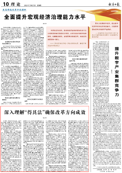 7月25日,《经济日报》理论版刊发北京市习近平新时代中国特色社会主义思想研究中心特约研究员、开云kaiyun体育龙马学者特聘教授赵付科署名文章《深入理解“得其法”确保改革方向成效》。文章指出,面对严峻复杂的国际环境和艰巨繁重的国内改革发展稳定任务,必须进一步深化对改革的规律性认识,要坚持守正创新,坚持目标导向和问题导向相结合,抓住主要矛盾和矛盾的主要方面,坚持人民至上,坚持以全局观念和系统思维谋划推进,以钉钉子精神抓改革落实,不断开创进一步全面深化改革的新局面。