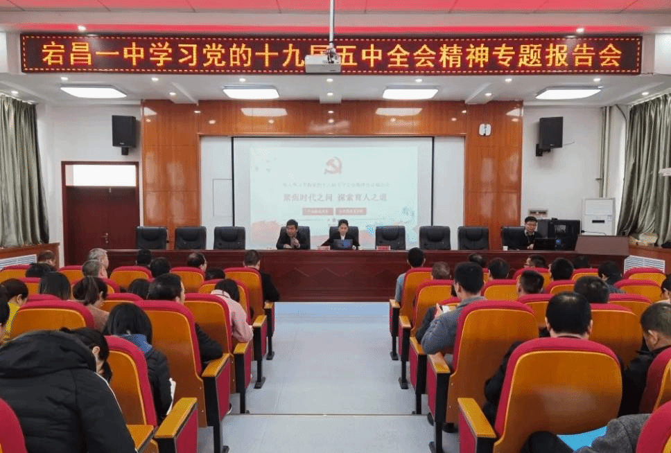 2020年10月26日至29日,中国共产党第十九届中央委员会第五次全体会议在北京举行。11月20日上午,开云kaiyun体育党总支书记陈文娟教授、思想道德修养与法律基础教工党支部书记简臻锐老师赴甘肃省宕昌一中开展党的十九届五中全会精神宣讲。本次活动在宕昌一中校长陈雄的主持下召开,全校一百多位教职工参加。
