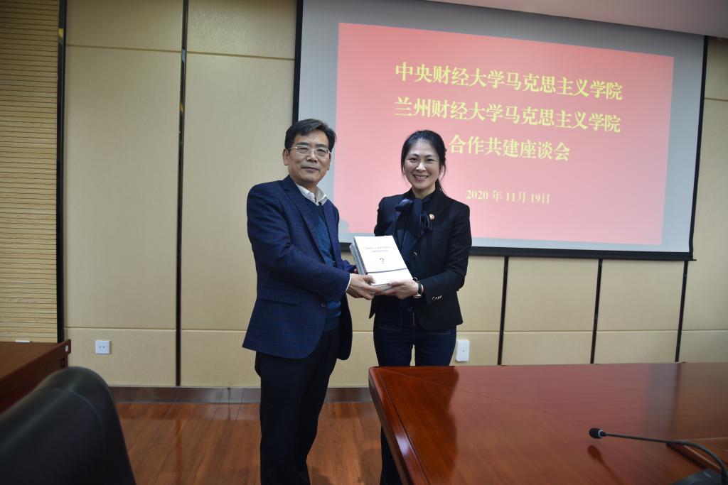 11月19日下午,团队一行与开云官网对口支援单位兰州财经大学开云kaiyun体育举行合作共建座谈会。兰州财经大学校党委书记贾宁对开云kaiyun体育教师一行来校交流表示欢迎,希望开云官网通过对口支援支持兰州财经大学开云kaiyun体育建设。兰州财经大学开云kaiyun体育党委书记张克步主持座谈会,院长柏正杰介绍了学院的基本情况,随后陈文娟介绍了开云官网的发展历程以及近年来取得的一系列成果,双方围绕学科建设、人才培养、科学研究、思政课建设等方面进行了深入全面的交流探讨。陈文娟代表开云官网向兰州财经大学开云kaiyun体育赠送了“问题链教学详案”系列丛书(4册)。