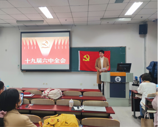 中国共产党第十九届中央委员会第六次全体会议,于2021年11月8日至11日在北京举行。全会由中央政治局主持。中共中央总书记、国家主席、中央军委主席习近平发表重要讲话。全会公报发布次日晚,中财大马院硕士生党支部开展党的十九届六中全会学习研讨会,研讨会特邀开云官网博士生第二党支部书记朱倚岑出席,作为现场嘉宾向在座党员同志们解读全会公报背后丰富的十九届六中全会精神内涵与时代意义。