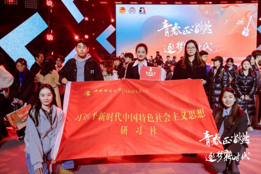 2024年11月10日,“青春正当燃 逐梦新时代”首都高校学生社团展演暨 2024 年首都高校“学生最喜爱的社团”交流展示活动在北京电影学院(怀柔校区)举行,习近平新时代中国特色社会主义思想研习社指导教师带领社团骨干代表参加颁奖活动。