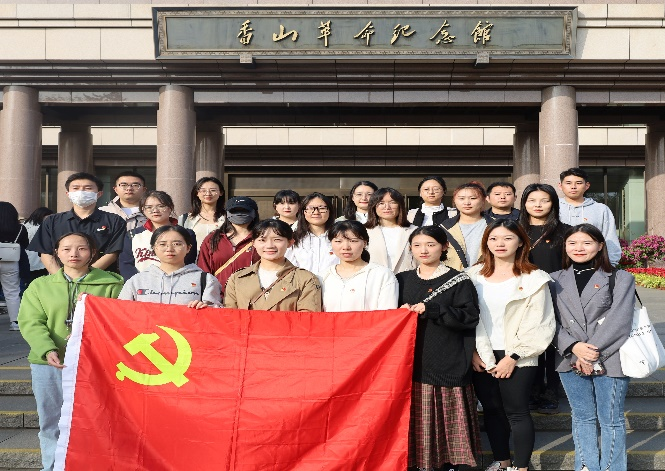 在香山革命纪念馆内党员同志们进行了精彩的现场教学。博士研究生第二党支部王萌同志分享了“红鱼书信寄深情——纪念伟大的无产阶级革命家任弼时”的学习感悟,硕士研究生第二党支部张慧同志作了题为“追寻红色印记赓续赶考精神”的现场学习。